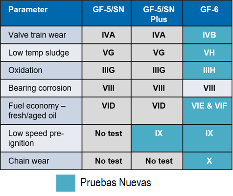 – API SP toma como base la especificación ILSAC GF-6, con la excepción del ahorro de gasolina.
